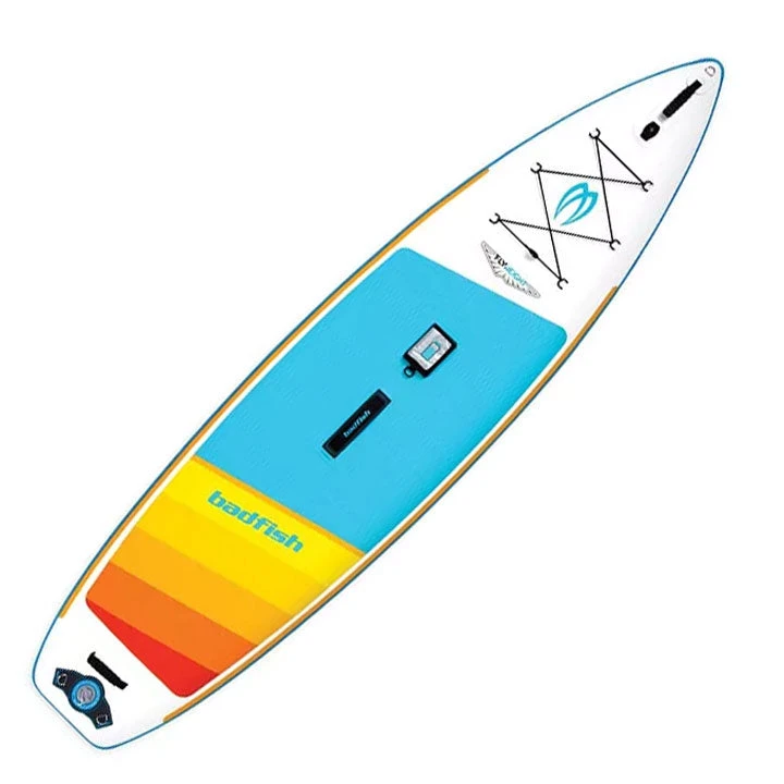 New 2021 lightweight 18 lbs. Badfish SUP Flyweight inflatable paddleboard package.