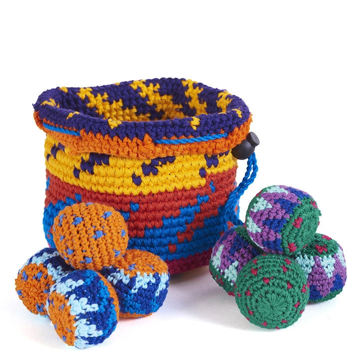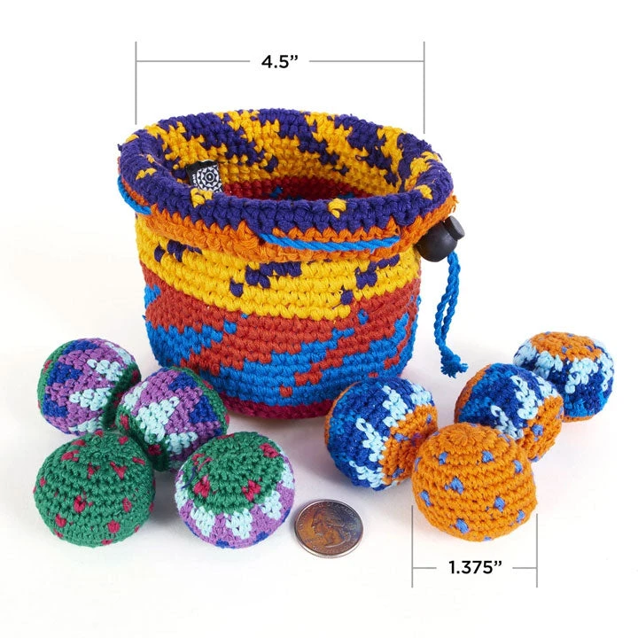 Great from campsites to kitchen tables, from dorm rooms to conference rooms, YippiYappa now has 15 games and growing for 2-4 players. Dump out the balls, pick the game and the teams and have at it. Kit contains one basket and two teams of 4 color-coded Peloties (mini sacks).