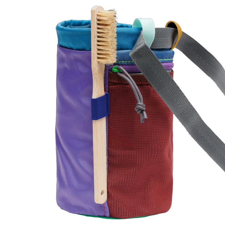 The Halcon comes with all the features you’d expect in a premium chalk bag—a structured rim opening for easy access, adjustable drawstring closure, a soft fleece interior, and an elastic brush loop—and adds some very nice details. The body-facing side of the bag features an elastic mesh pocket that’s perfect for a quick snack or energy bar and a zippered media pocket that’s designed to fit today’s larger smart phones. Dual attachment points keep the bag stable, and the included waist belt—made with tough nylon webbing—is held secure with a durable, nylon, quick-release clip. Finally, as part of our Del DÃa Collection, every Halcon is one of a kind—made by employees who have creative control over its final look.