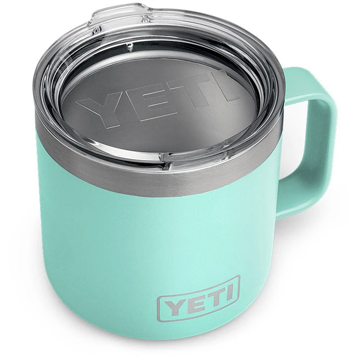 The YETI Rambler® 14 oz Mug is the toughest, most over-engineered camp mug out there, because your hard-earned warm mug of chili after a long day deserves nothing less. 18/8 stainless steel keeps contents hot (or cold) and hands protected. Find a color that calls to you – the mugs are available in stainless steel, and in DuraCoat™ Color.