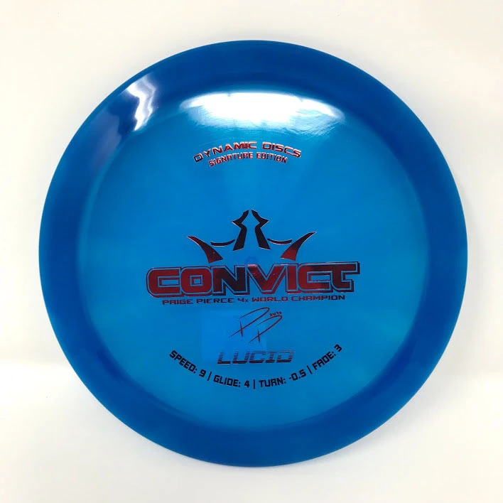 It is a great complement to the Felon with the same feel in the hand but with less stability. The Convict is perfect for those times when you need a straight disc for most of the shot but have to have some stability at the end of the flight. The Convict can also hold the anhyzer you give it before coming back to flat. This disc allows for you to shape your shots to avoid all of the obstacles that are trying to increase your scores.
