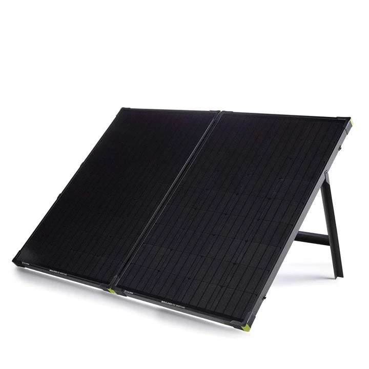200 total Watts – two 100 Watt panels (14-21.8V) chained together and connected by a hinge