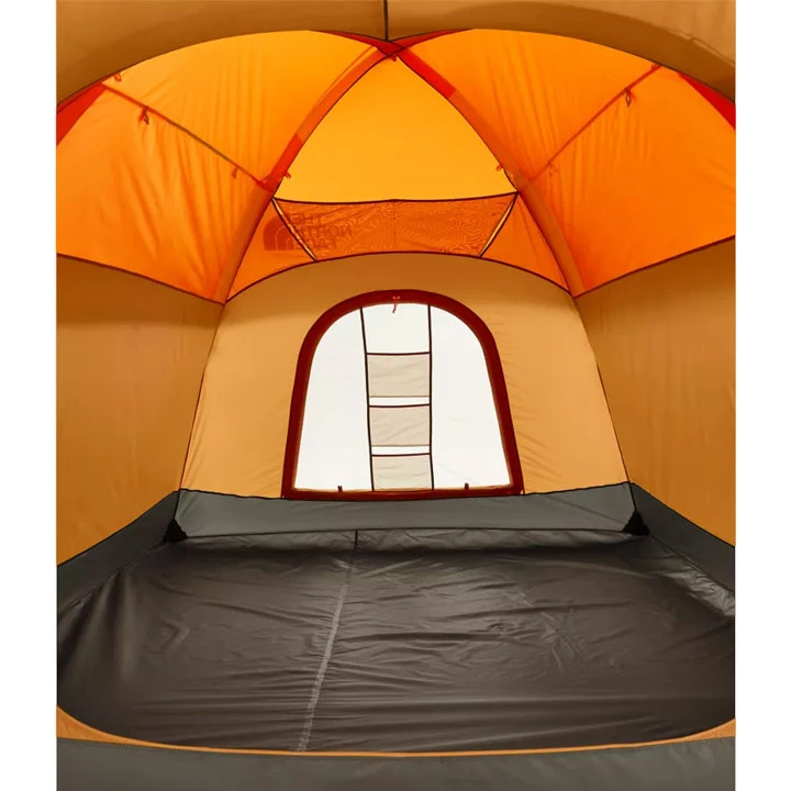- SPACIOUS DESIGN. This family tent features a large double-door front vestibule and a rear door and vestibule. Full stand-up height makes maneuvering around a breeze. Two large windows provide great visibility and breathability on warm days.