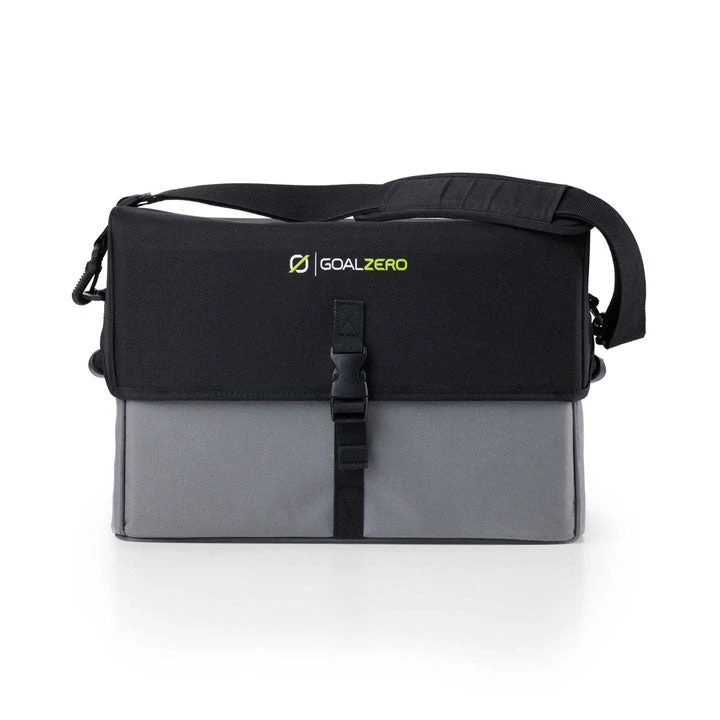 Keep your Yeti 1000X /1500X and Yeti 1000/1400 Lithium power station safe during transportation and out of the elements with a sturdy case. Features a shoulder strap for carrying and buckles for securing. Does not provide a waterproof enclosure for the Yeti.