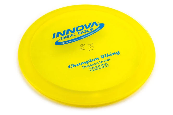 The Viking is one of our most versatile distance drivers from start to finish. The Viking is a long straight flyer with a very predictable fade at the end of the flight. This is an excellent disc for throwing both side arm and backhand shots due to its easy grip and neutral flight. The Viking is perfect for holding long, line drive shots as well as graceful left or right turning shots.