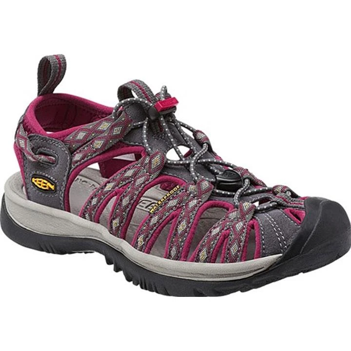 From hidden coves to rushing rivers, the Whisper sandal from KEEN can manage any water-filled day. The quick draw elastic cord lacing system adjusts to a comfortable and secure fit. The washable polyester upper features the odor-reducing Aegis Microbe Shield®. The foot-cushioning EVA molded footbed provides comfort on the go.