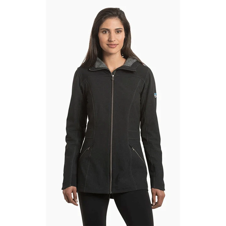 The KÜHL W’S KLASH™ TRENCH features durable FLEXWÜRX™ brushed softshell fabric with a unique 2-tone weave, added abrasion resistance, and DWR finish for year-round performance. The softshell fabric withstands 50K rubs to pass the Martindale abrasion test. The soft, brushed back provides superior comfort and warmth.