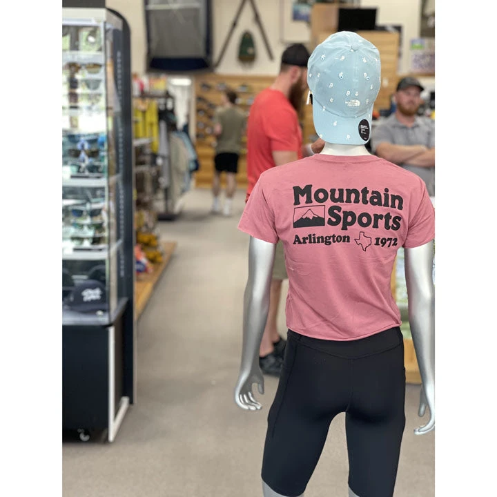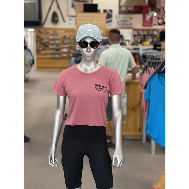 Binding:Â 1×1 baby rib, relaxed crew neckline. Raw edge sleeve and hem. Cropped body with relaxed fit. Side seamed.