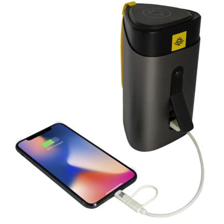 Highly-versatile, multi-voltage power pack with integrated AC outlet for charging laptops, SLR cameras, smartphones, and other 5V, 20V, 110V, or 220V devices. Dust tight and waterproof.