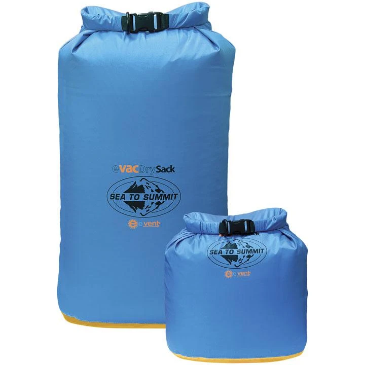 The new eVAC™ Dry Sack is a slimmed down version of our award winning Event® Compression Dry Sack. We use waterproof, air permeable Event® fabric on the base for valve-free air expelling, allowing compact packing. Instead of straps for compression, you just roll the sack down and air is pushed out of the base. Then close the buckle and you’ve just saved space and weight. The sack is oval-shaped, rather than round so they resist rolling when laid on their side. Suitable to keep contents dry in any wet situation where the bag is not submerged.