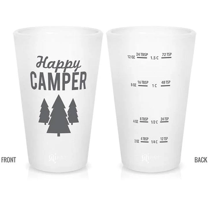 Did you hear that? ItÂ’s the sound of your next adventure calling. These camping glasses are ideal for mixing up a cold cocktail after a long day on the trail. And after hooting owls and distant coyotes have kept your little ones awake all night, your Happy Camper will hold the perfect amount of hot coffee. Popular with outdoor enthusiasts of all ages, our silicone pints hold 16 ounces of your beverage du jour, with measurements to boot. Family sets include a bottle topper that doubles as a 1.5 ounce shot glass. In your RV, on the boat, or in your backpack, this camping drinkware will squish into your camp kitchen. Silipints are unbreakable, dishwasher, microwave, oven, and even campfire safe. All of our products are made from environmentally friendly materials, they are also BPA free and a reusable alternative to plastic, paper, and styrofoam cups.