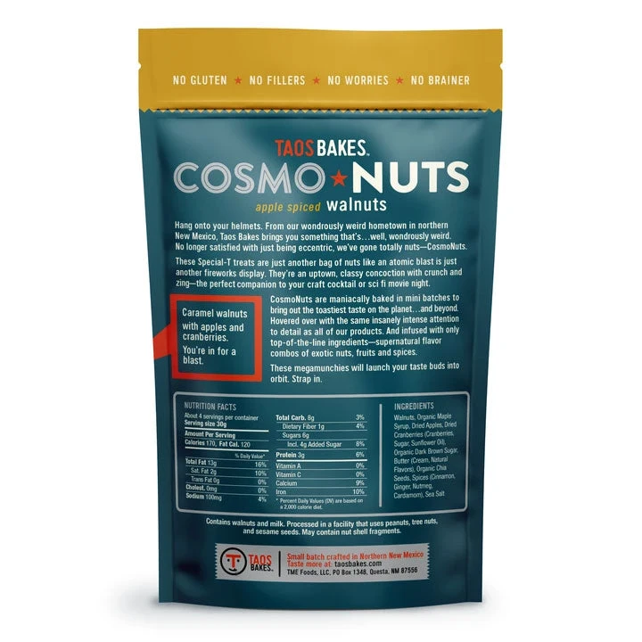 Hang onto your helmets. From our wondrously weird hometown in northern New Mexico. Taos Bakes brings you something that’s…well, wondrously weird. No longer satisfied with just being eccentric, they’ve gone totally nuts-CosmoNuts.