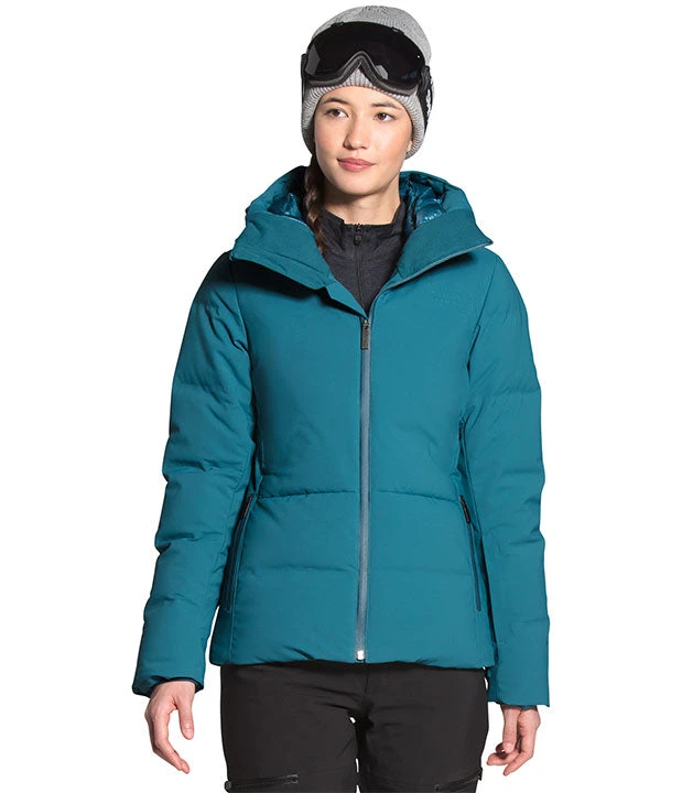 The slim-fit, stylish Women’s Cirque Down Jacket has a waterproof finish, 550-fill Down in the body and arms, and an oversized helmet-compatible hood.