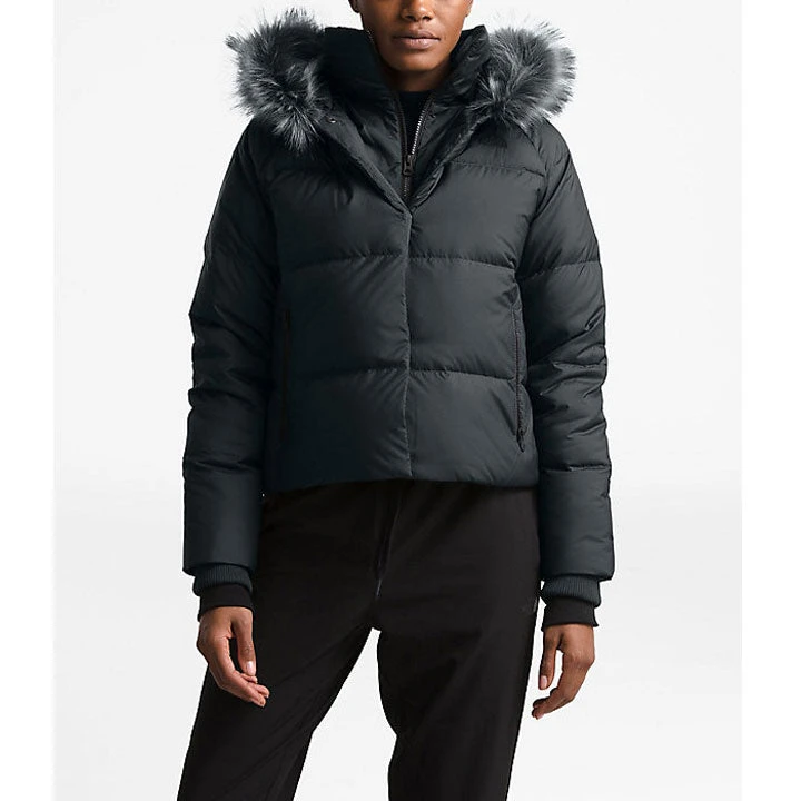 The North Face Women’s Dealio Down Crop Jacket is a puffer jacket for the city. Cropped for style and packed with 550 fill water-repellent down for warmth on cold weather days. The hood is attached but the faux fur ruff is removable, so you can change your style in a flash.