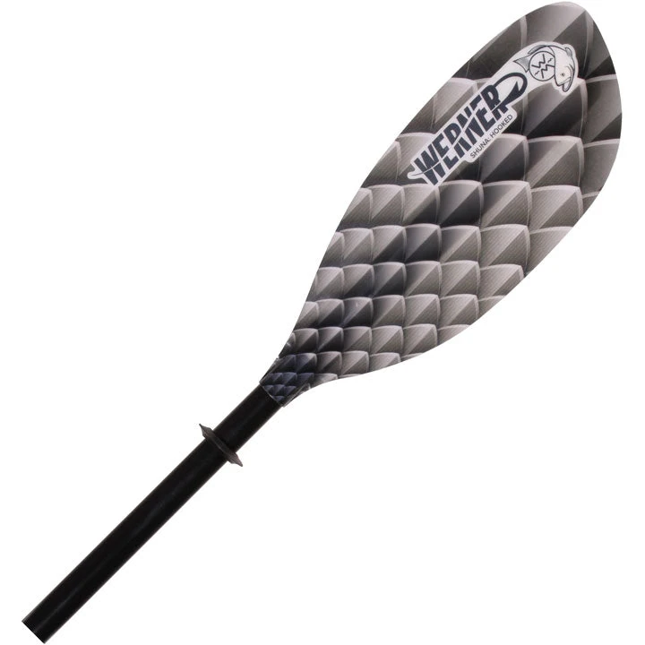 The Shuna is Werner’s most popular high angle fishing paddle. For those looking for a more efficient paddling style keeping the boat tracking straighter, this is the paddle to look choose. Still versatile enough for maneuvering strokes when controlling your boat to get a better casting angle. The perfect choice for anglers looking for a light, stiff and durable high angle paddle.