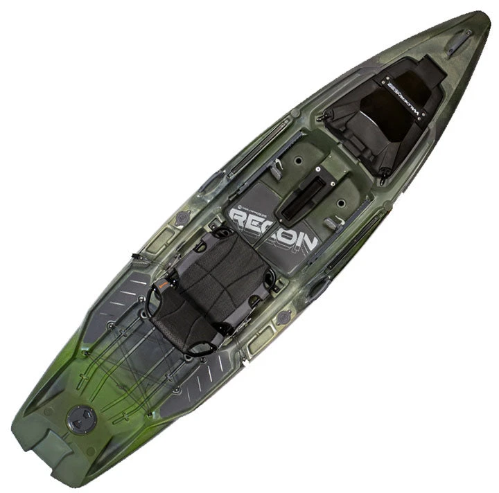 A confidence-inspiring fishing machine for both the novice and expert, the Recon is a factory-loaded boat that you can rig your way. With a fully customizable open platform, a lineup of revolutionary new features, and the freedom to choose the preferred mode of propulsion – paddle, pedal, or power – the Recon series of kayaks are the future of fishability. (Note: This model is Helix PD™ Pedal Drive-capable and the Helix PD™ Pedal Drive can be purchased separately. The Recon 120 HD comes with the Helix Pedal Drive installed.) Aftermarket motors can also be deployed with a direct-to-boat stern mounting interface.