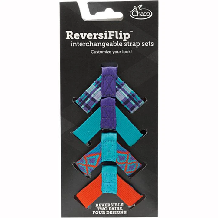 Interchangeable straps for the ReversiFlip, available in 3 sets and 12 color options. Each pack includes 2 uniquely designed webbing straps that can be reversed for up to four color options.