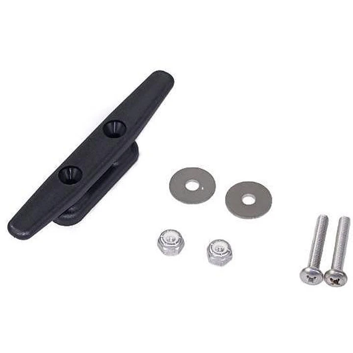 Bar cleat with stainless steel mounting hardware, screws, washers and locking nuts. Holds up to 1/4″ rope.